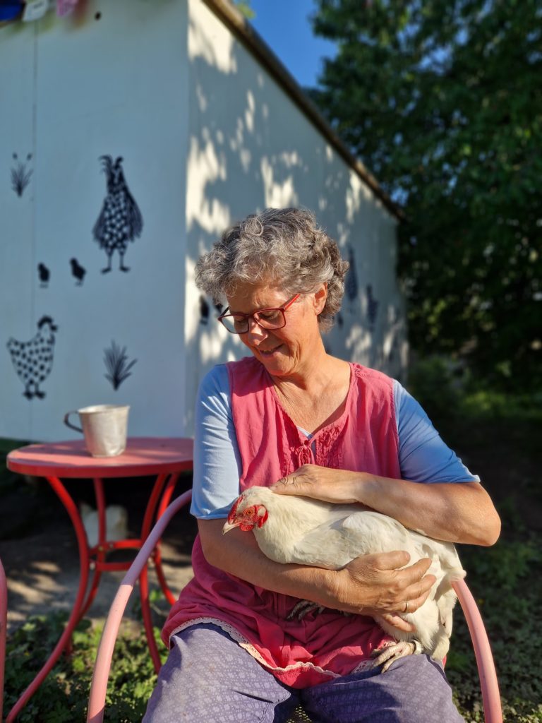 im liebevoll gepflegten Natur-Garten, zwischen den Hühnern sitzen, in die Hennenwelt abtauchen, zu sich kommen, Frieden & Freude spüren, EINFACH SEIN